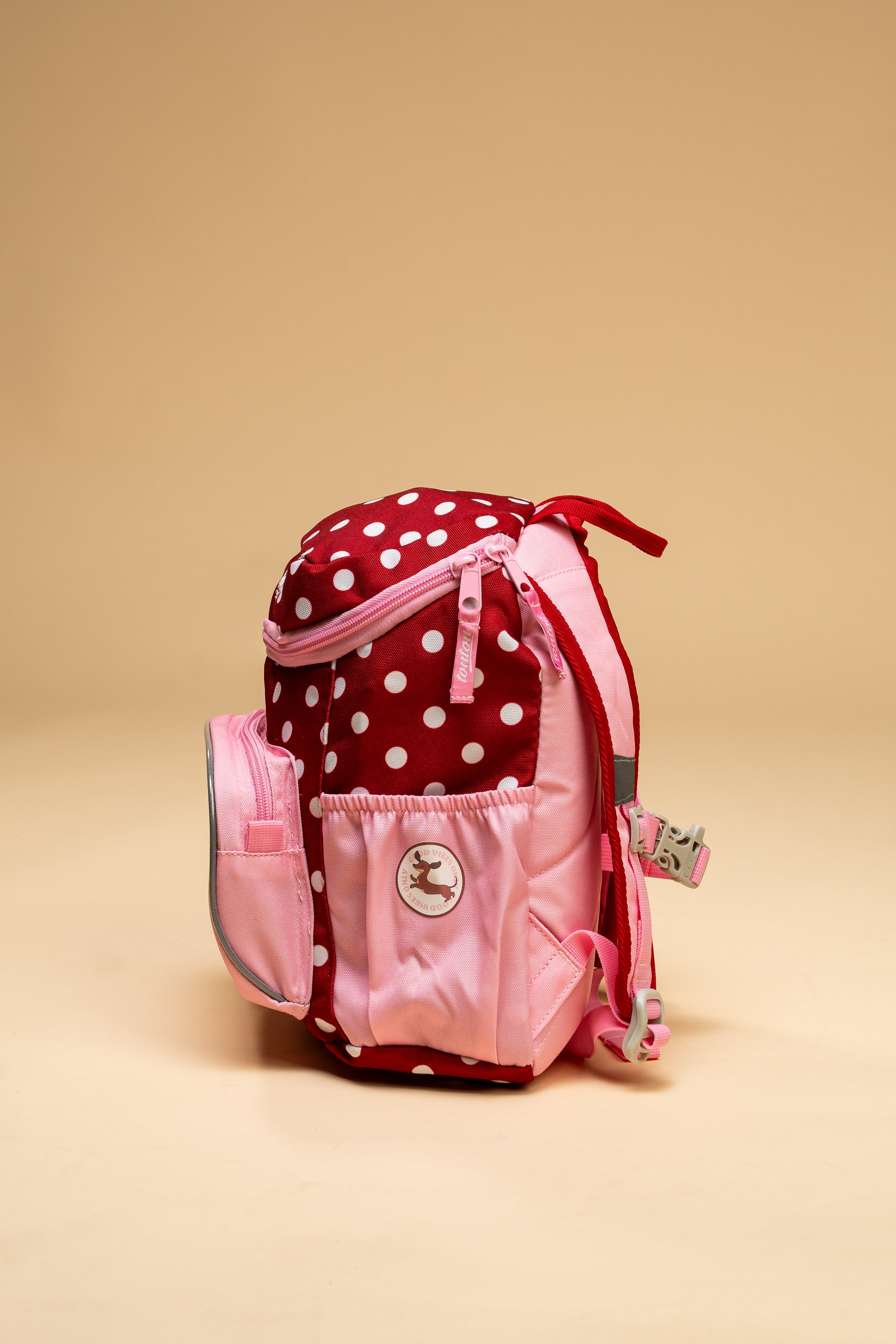 Hergestellt aus robustem RPET-Material (recyceltem Kunststoff), ist der tonton mini Freunde besonders umweltfreundlich, PVC- und PFC-frei sowie PETA-Approved Vegan – für einen nachhaltigen Start ins Leben. Die fluoreszierenden Elemente sorgen zusätzlich für gute Sichtbarkeit im Straßenverkehr und machen den Rucksack zu einem echten Blickfang.